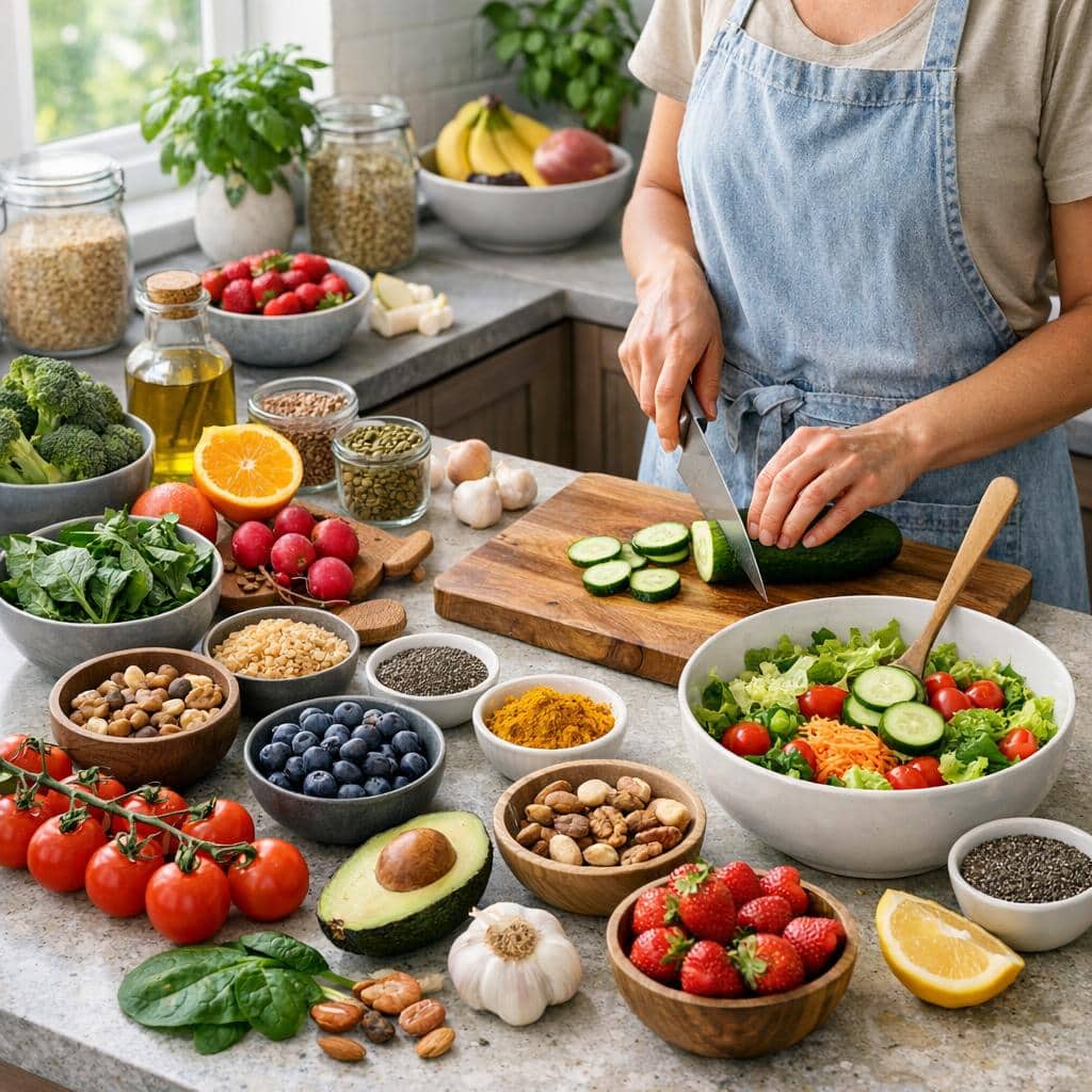 Gesunde Ernährung gelingt am besten mit klaren Routinen. Plane deine Mahlzeiten und kaufe gezielt ein. Vermeide verarbeitete Fertigprodukte und konzentriere dich auf frische Zutaten. Kochen muss nicht kompliziert sein – einfache Rezepte reichen oft aus.